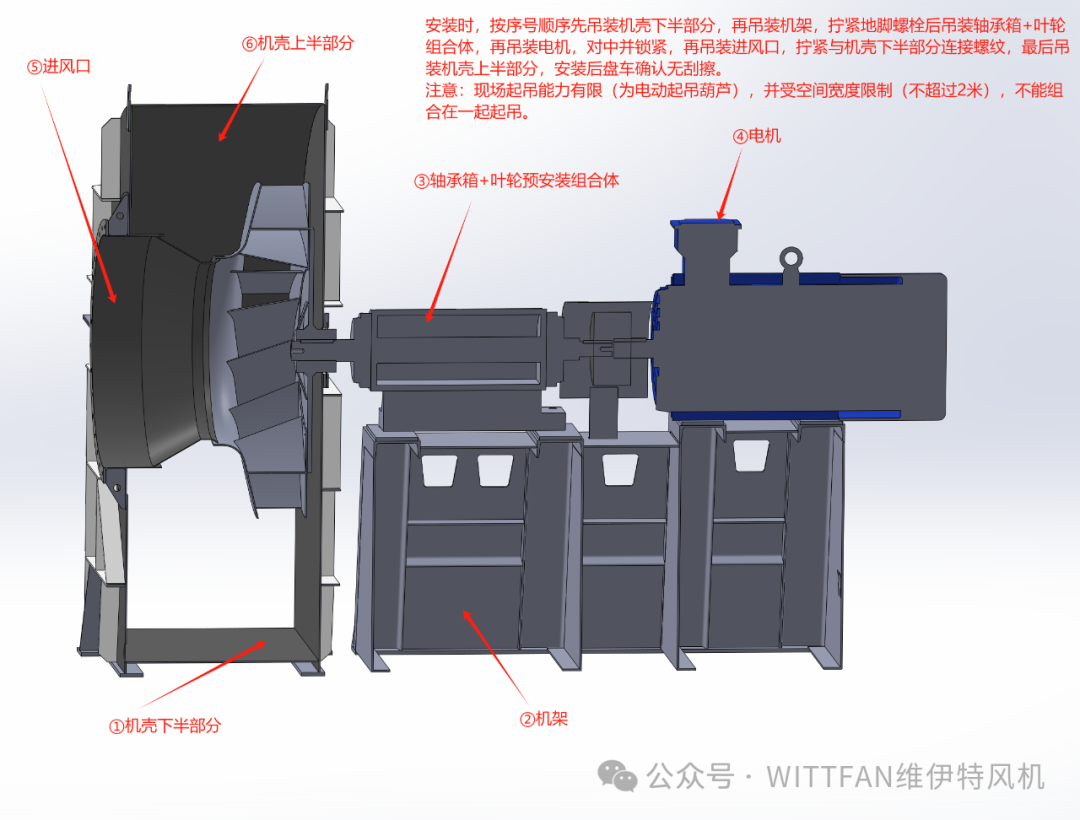 维伊特风机的设计理念是尽可能在工厂将主要部件全部撬装化,这样既能保证各个部件之间精密的组合,同时可以进行整机测试出厂,到现场无需进行零部件的组装,极大降低了现场的工程量,节省了安装时间,为用户项目的迅速启用节省了宝贵工期。